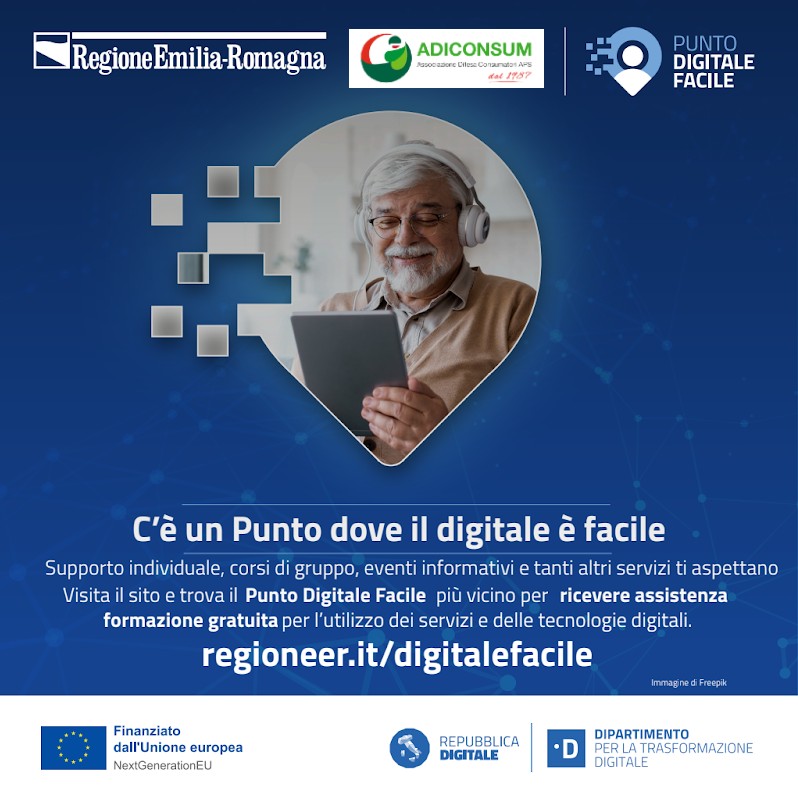 I nostri sportelli siti nei territori di Bologna, Reggio Emilia, Modena, Forlì-Cesena, Ravenna e Rimini fanno ora parte della “rete inclusiva di facilitazione digitale per l’accompagnamento e il supporto dei consumatori-utenti all’utilizzo dei servizi digitali e per il contrasto al divario digital” della Regione Emilia-Romagna.